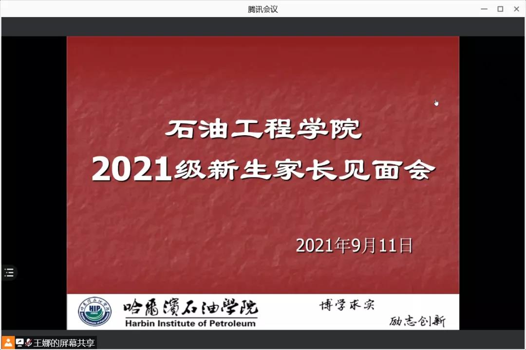 秋风送爽日,温馨共育时。飒爽的秋风,飘然而至,为了更好的开展迎新工作,扎实有效做好疫情防控期间新生开学各项工作,帮助广大新生和家长更好地了解、适应学校、解答新生家长存在的问题,促进家校合作,在9月11日18:00,石油工程学院在腾讯会议召开2021级新生家长会,出席本次会议的有石油工程学院党总支书记&2021级新生辅导员刘雁春、石油工程学院副院长李岳祥,院长助理&油气储运专业系主任朱砂,石油工程专业系主任胡旭。会议由2021级新生辅导员助理王娜老师主持。