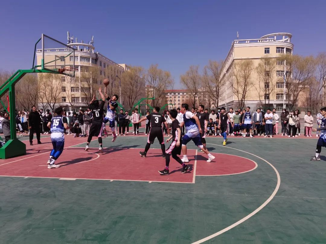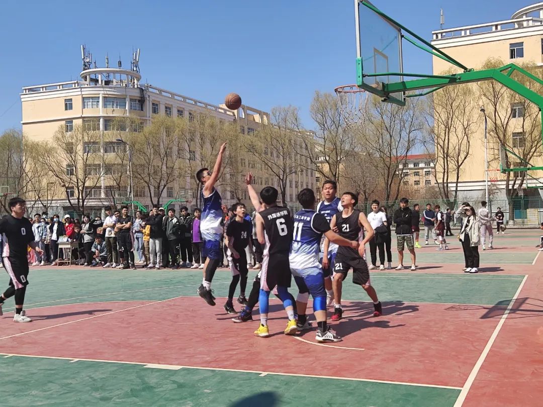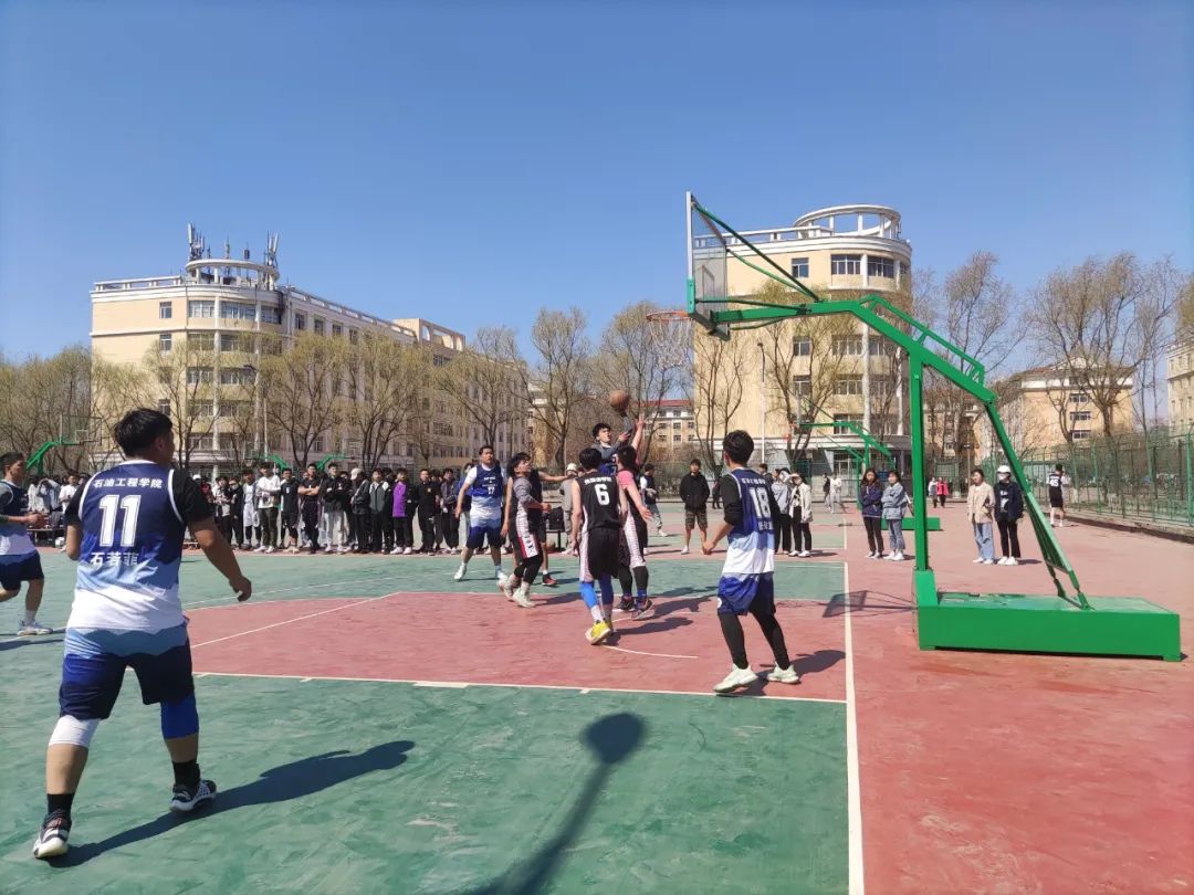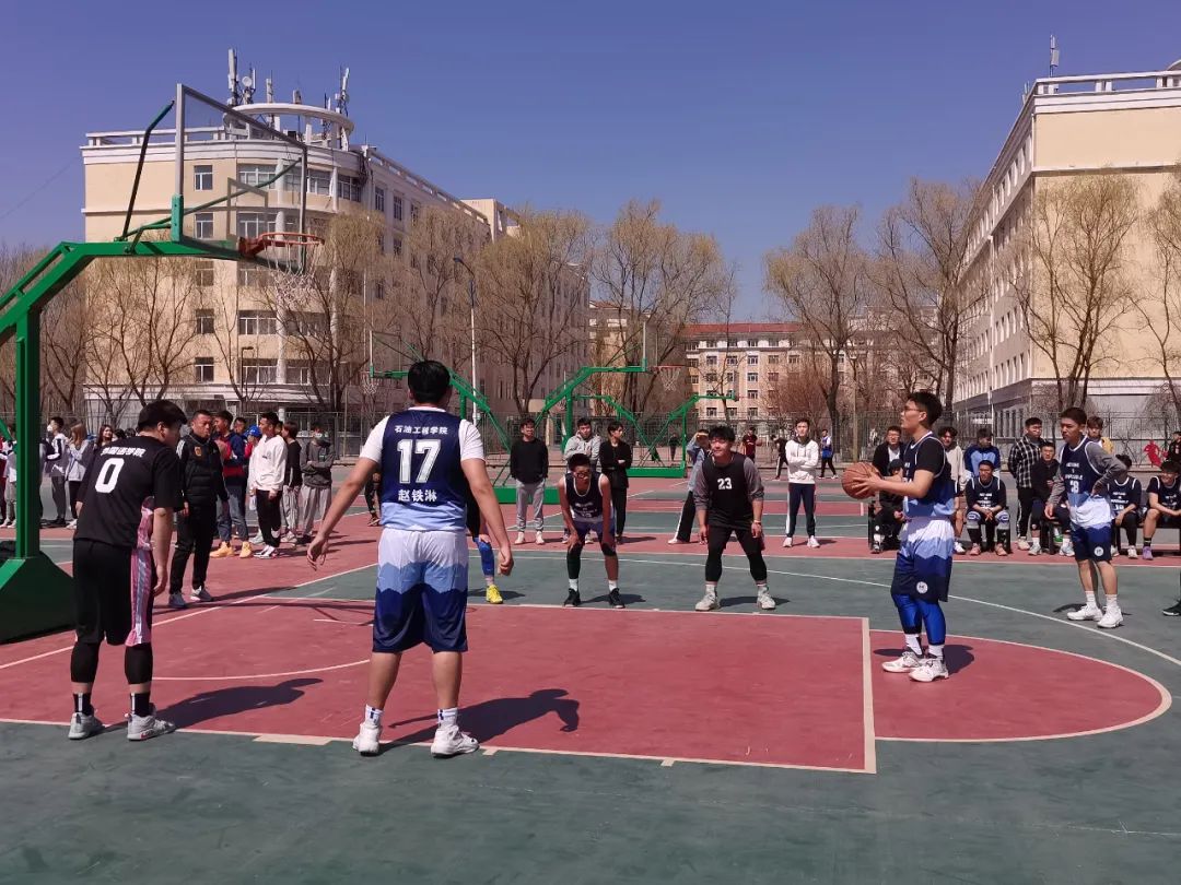 4月20日中午,在第九届运动会篮球赛中,石油工程学院与外国语学院开展友谊赛,比赛过程中,同学们并驾齐驱、你追我赶,终于以优异的成绩获得阶段性的胜利,下面让我们看看他们在球场上的精彩表现吧!