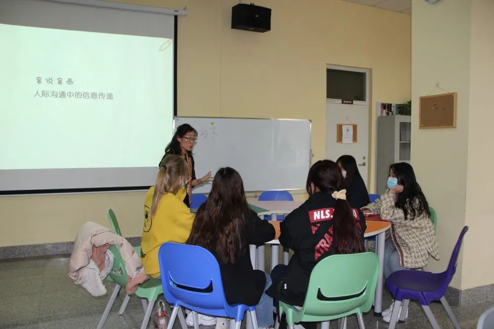 首先,在活动过程中王威老师带领同学们进行团体凝聚力训练活动,以寝室为单位绘画出各自想法,绘制完毕后进行讲解。同学们交流思想,增加信任,改正不足。进行“你画我猜”活动,使同学们在看不见的情况下传递信息,明白误会产生于不理解,通过游戏引导同学们在日常生活中以正面视角看待问题,传播正能量。随后又进行了“拍卖会游戏”,进一步让同学们去了解自己的世界观,认识自我,改善自我。
