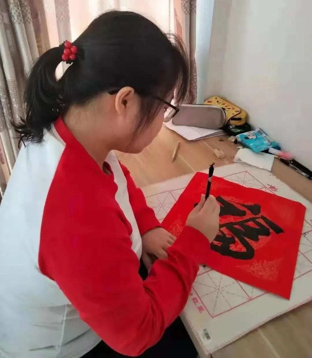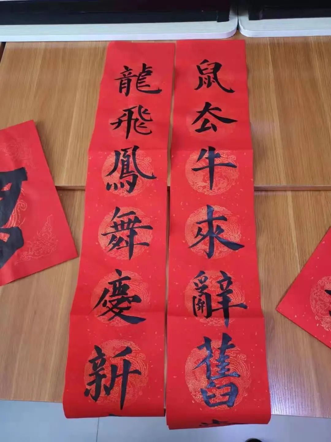 一副副散发着清新墨香的春联、一张张吉祥喜庆、墨宝飘香的春联彰显出大家对新年的期盼与对美好生活的懵懂与向往。