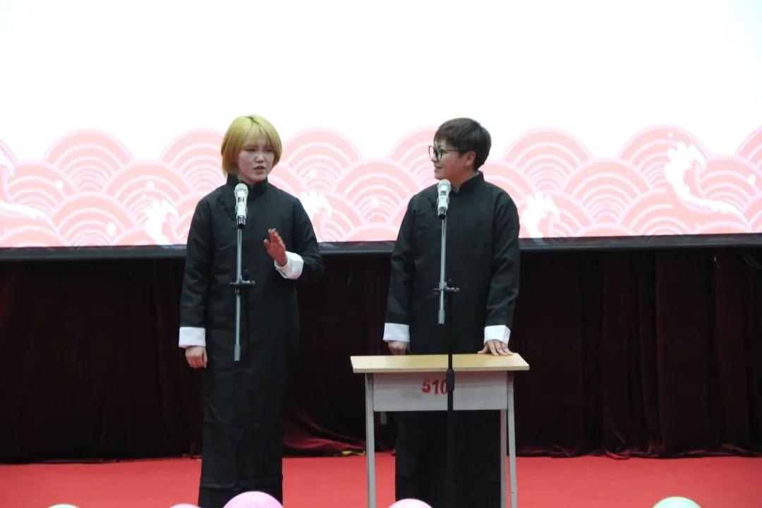 紧接着是由周星延,翟梦瑶,李欣宇带来的快板节目《同仁堂》,清脆的竹板从过去响到今天,那同仁堂里十大名医的故事还在流传。幽默的声调加上欢快及富内涵的相词,让同学们听的非常尽兴。