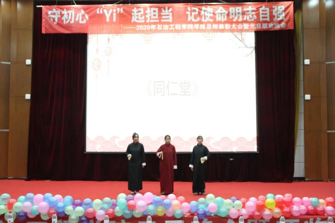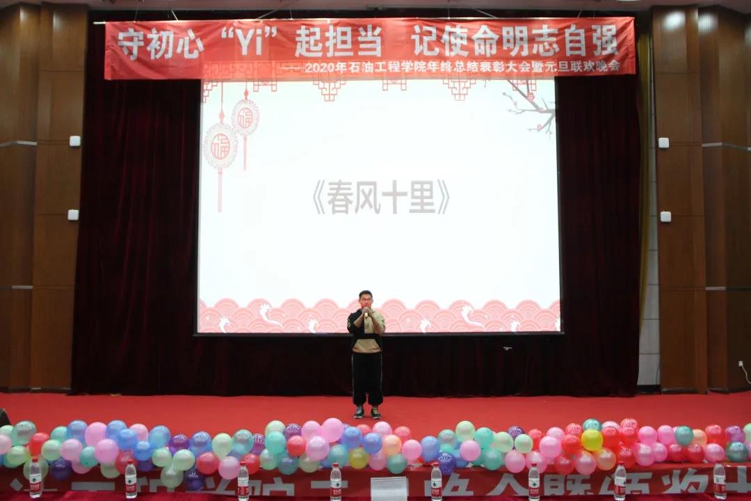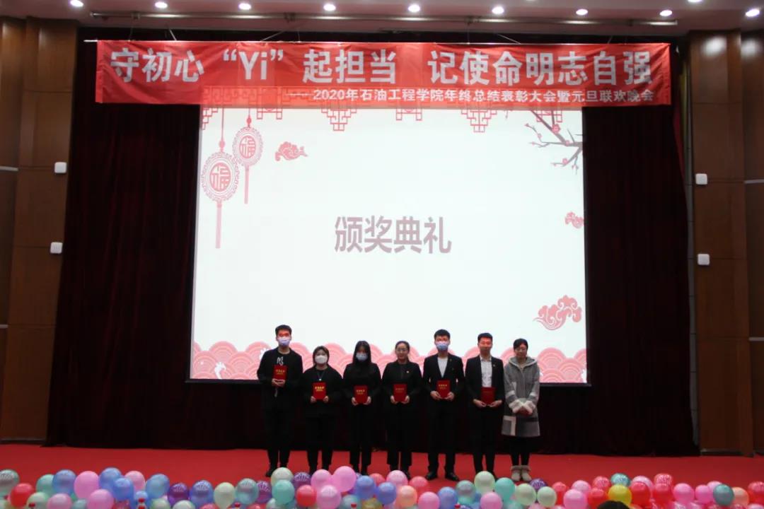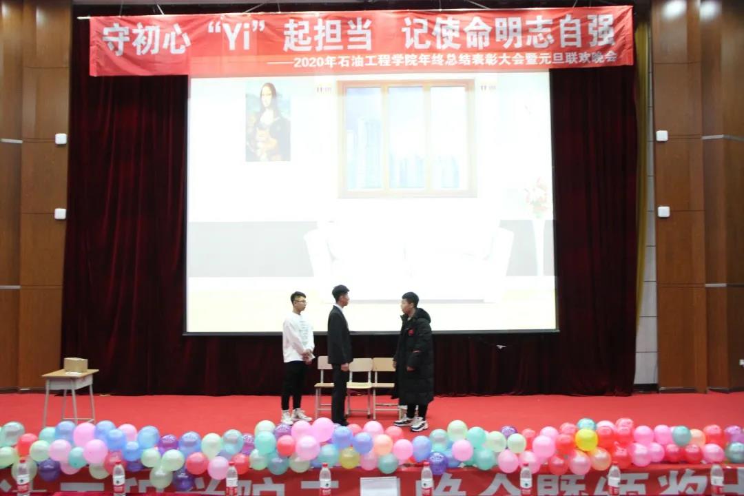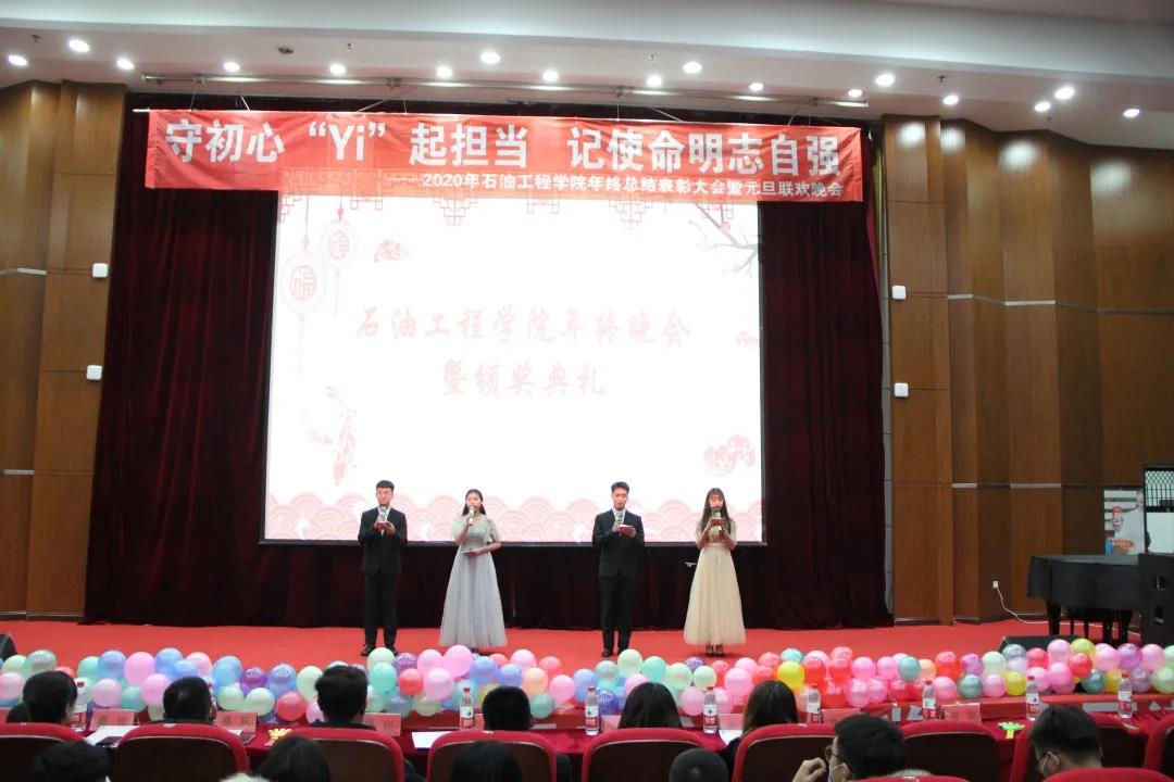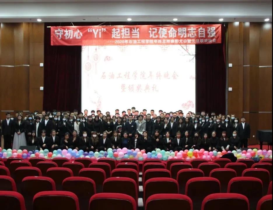 为迎接新的一年的到来,回忆总结2020年的精彩瞬间与成果。石油工程学院于12月15日下午5点30分于图书馆报告厅举办了以“守初心“Yi”起担当,记使命明志自强”为主题的年终晚会暨颁奖典礼。校团委书记王锦石、校团委副书记彭雷、党总支书记刘雁春、党总支副书记&2020级辅导员张雪、学团办公室主任&17级辅导员王昱,学生党支部书记&18级辅导员贾延迪以及19级辅导员郭海明出席本次活动。