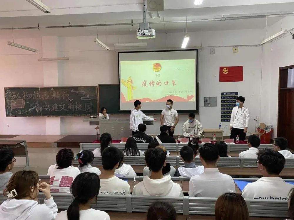 我院团总支高度重视,细致组织,指导我院各年级开展了形式多样,内容新颖的19场专题活动。各班团支部精心准备,带领广大团员学生排练了各具特色的小品、三句半、演讲、演唱、相声等高质量的节目。节目紧扣“弘扬抗疫精神,共建文明校园”团活主题,号召广大同学积极配合学校防疫工作,约束自身行为习惯,共建文明校园。