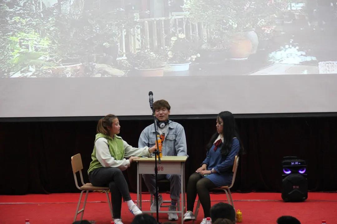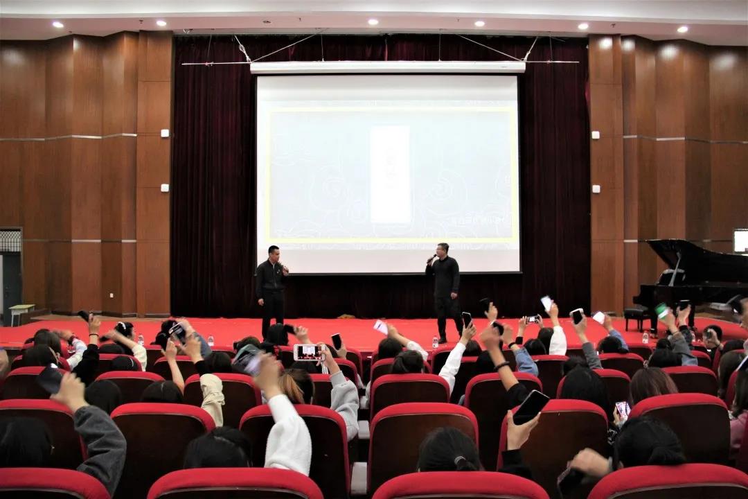 节目进行的同时,演员们也不忘用自己的方式表达出他们的情感及对学院老师、同学们的美好祝福。
