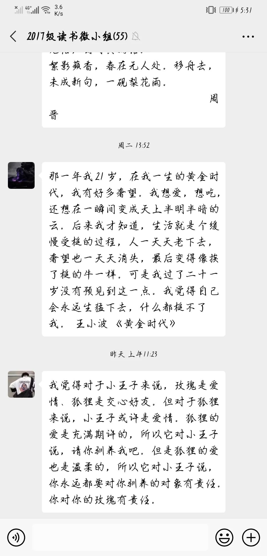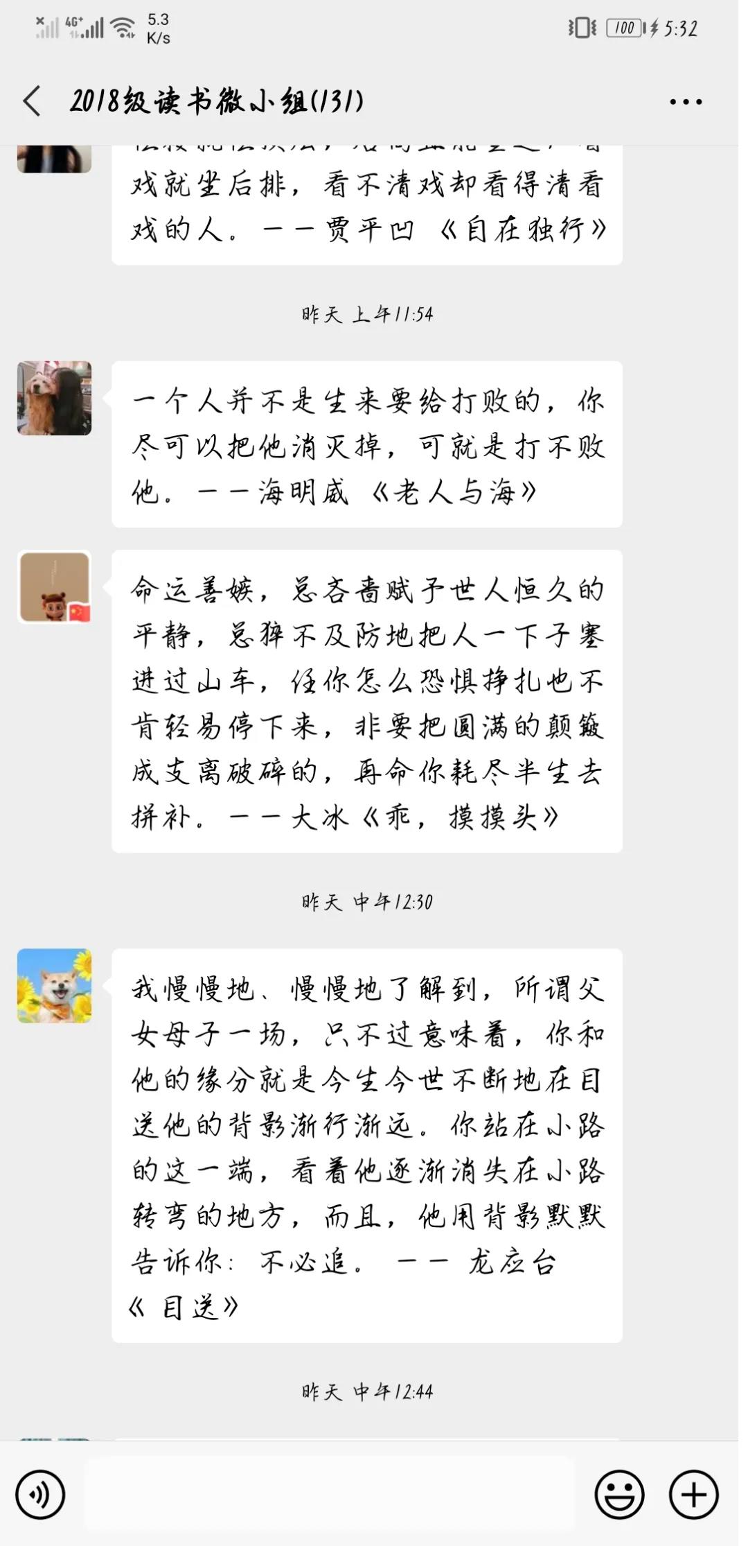 为培养越来越多的学生养成良好的读书习惯,提高学生的品位和鉴赏力,鼓励学生通过阅读与书本为友,与大师对话。在人类优秀文化遗产中净化灵魂,丰富内涵,升华人格,陶冶情操;教育引导学生树立健康、科学的学习观。在校团委举办的“读书月”活动中,石油工程学院成立了“线上读书微小组”。此次活动以年级为单位成立三个小组进行线上读书活动,各小组按读书计划开展阅读,切实保证每名同学都能按照“定时间”“定计划”“定篇目”的三定原则开展读书学习及交流讨论。