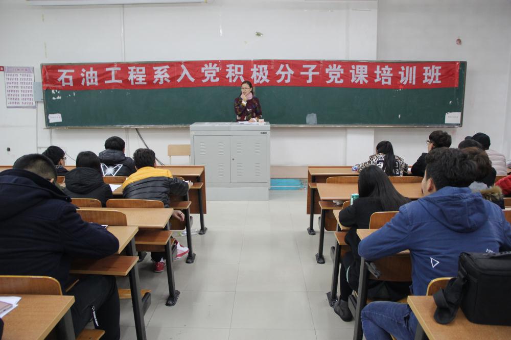 10月26日下午5点,石油工程学院入党积极分子培训班第三讲在主教503开课。万博官网党委组织部副部长吴东爽老师以“端正入党动机”为主题对全体学员进行了培训,帮助同学们树立了正确的入党动机,使同学们真正了解了一名合格共产党员的标准和《党章》规定的入党程序。