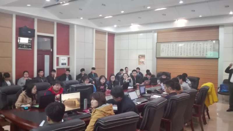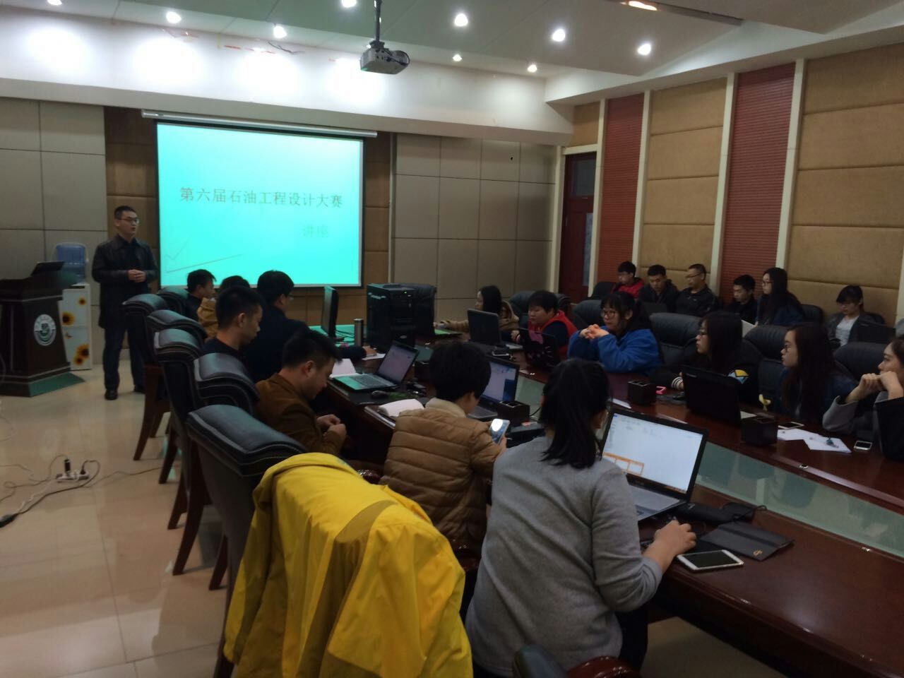 王春尧和崔星两位老师在两天时间里,耐心细致地为同学们讲解了petrol和eclipse两个软件的操作应用,并结合比赛实际,指导同学们学会处理数据、编程、建立模型等内容,对大赛数据进行了系统的分析与说明。并且与青年教师和学生们进行了深入的探讨和交流。