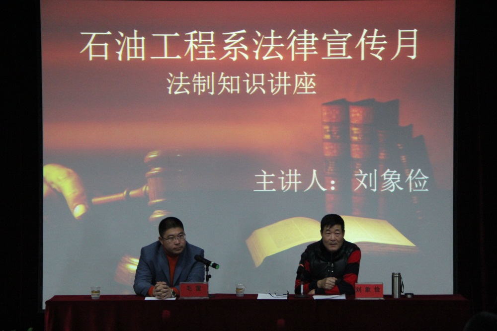 为切实推进法制宣传教育,增强学生的法制观念和自我保护意识。11月10日下午2点,石油工程系在主教518举行了法制安全教育专题讲座。学院分管安全保卫工作的院长助理刘象俭应邀出席,并作为主讲人给同学们上了一堂生动的法制安全教育课,就当前大学生违法犯罪事件和校园安全问题进行了详尽的阐释,规范了学生的行为习惯,提升了同学们遵纪守法的意识。系党总支书记毛雷主持会议,全体辅导员及2015级学生听取了讲座。