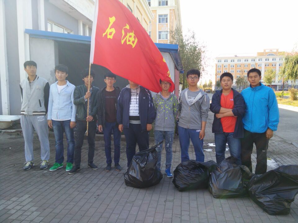 9月28日中午,在党总支副书记孙金莹的带领下,石油工程系学生会干部以及14级学生志愿者对校园分担区的环境卫生进行了彻底的清扫。