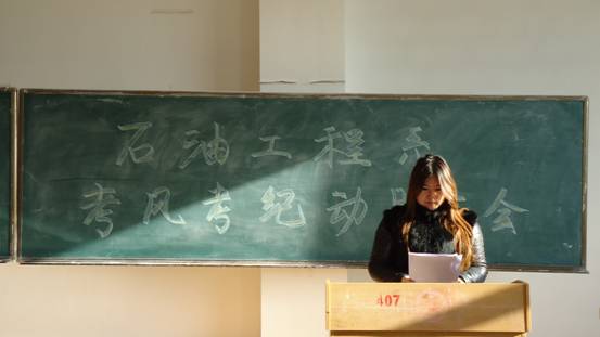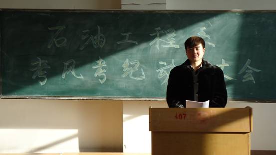 本次动员大会由石油工程系团总支书记彭雷主持,金书记做了关于“端正考风,严肃考纪,诚信考试”总结,参加此次大会的还有我系10级全体同学。其目的是建设我院优良学风校风,严肃国家英语四六级考试及期末考试纪律,加强考风。