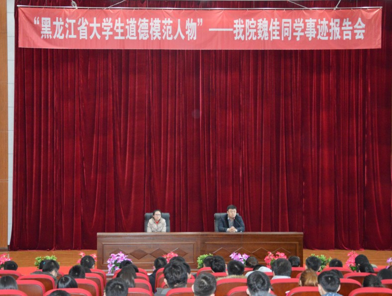 3月13日中午12点,我院 全省大学生道德模范人物——魏佳同学事迹报告会在图书馆报告厅如期举行,全院各系党总支副书记、团总支书记和2013级辅导员出席会议,各系2013级新生以及7个院级学生社团组织共计600余人参加了报告会。