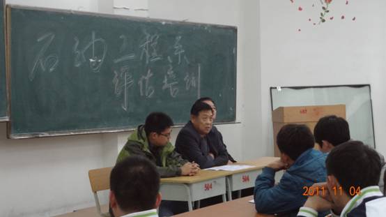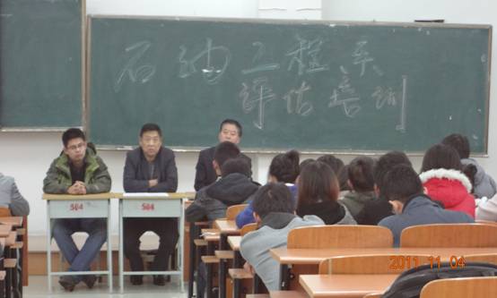 本次评估培训由石油工程系金铁钢书记、侍建军书记主讲、彭雷团总支书记主持。来参加本次培训的由我系08级到11级的各班级干部及同学等组成,可见同学们对学院转设的关心程度之高,同时也表明了他们将要为学院转设做贡献的决心。