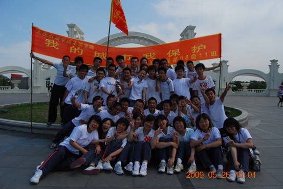 为了唤起人们保护环境的意识,石油工程系08级11班的学生自发的组织了一次名为“我的城市,我保护的”的公益性活动。