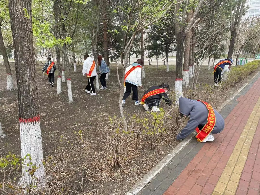 为热烈庆祝“五一”国际劳动节,弘扬工人阶级伟大品格,展示劳动者风采,营造崇尚劳动的浓厚氛围,共建和谐环保校园,在我院党总支书记刘雁春的号召下,4月30日,我院党员、团员、入党积极分子志愿者组织组织开展了志愿捡垃圾活动和教室消杀活动。本次活动由2021级辅导员王娜带队。