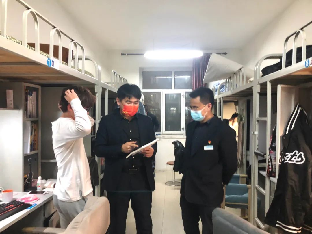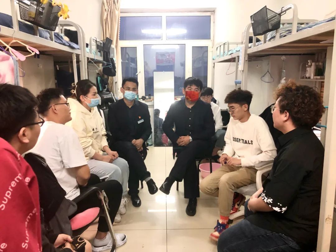 为深入了解疫情防控期间学生的线上学习情况和生活状况,掌握学生学生生活诉求,做好心理疏导。4月30日晚,我院院长李岳祥,党总支书记刘雁春,在21级辅导员王娜的陪同下深入走访各年级学生宿舍,暖心关怀线上学习。