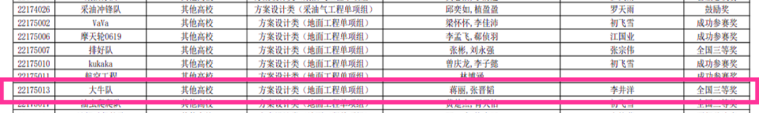 近日,第十二届中国石油工程设计大赛落下帷幕,本届大赛共有国内48所高校及科研院所的2751支队伍报名参加,共提交作品1207份。我院由油气储运教师—李井洋所指导的学生队伍在方案设计类(地面工程单项组)中荣获全国三等奖,充分展示了我院学生勇于探索拼搏、敢于超越自我的品质及优秀的创新实践能力。