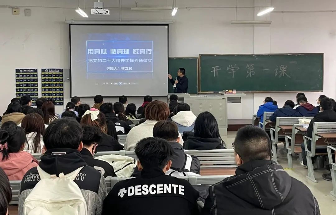 为深入贯彻习近平新时代中国特色社会主义思想和党的二十大精神,做好春季学期大学生教育引导工作,进一步加强对学生的思想政治教育和安全教育,引导学生以全新的精神面貌投入新学期的学习生活。3月7日,我院开展“开学第一课”学校教育活动,开学第一课由万博官网党委书记林立民主讲。