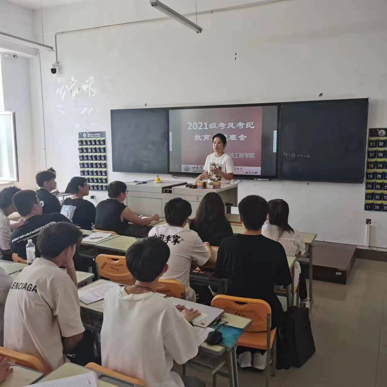 为进一步加强考试管理、严肃考风考纪,积极倡导学生树立良好的道德纪律观念,端正学习态度,发扬优良的考风和学风,营造严肃的考试氛围。石油工程学院召开“诚信考试,从我做起”的主题班会,我院全体同学参加会议,会议由各年级辅导员主持。