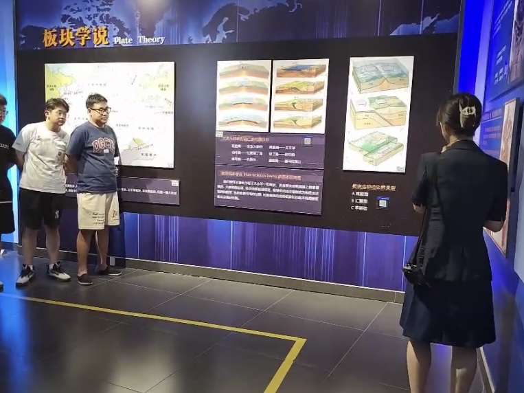 第一天,由老师们带领大家参观柳江地质博物馆,同学们在讲解员详细的讲解中依次参观了地质科学厅、柳江盆地 地质遗迹厅等5个展厅,生动形象的图片、视频、模型、实物标本等让师生更加直观的认识了解地球结构、地质作用与生物演化过程,感受这一片历经25亿年桑海桑田变化的柳江盆地。