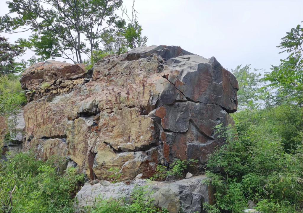 来到今天第一个地质观测点:亮甲山剖面小路。观察描述辉绿岩岩性特征及产状:黄褐色,隐晶结构,可见气孔构造,呈岩床产出。