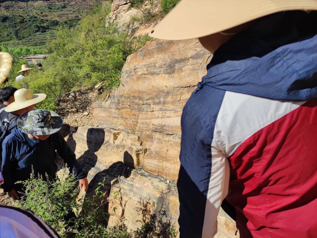 来到今天第六个地质观测点:水库旁。此处为古生物化石观测点,可见大量三叶虫化石。