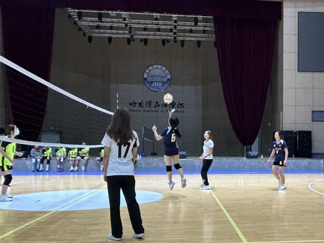 赛场上,成员们配合默契,球来球往间尽显竞技风采,观众们热情互动,助威呐喊声响彻整个场馆,我院石油学子以奋勇争先、敢于超越的时代风采,让铁人精神在排球场上燃情绽放。