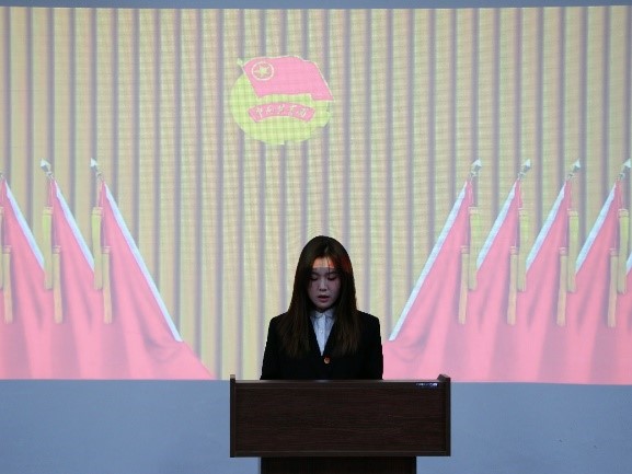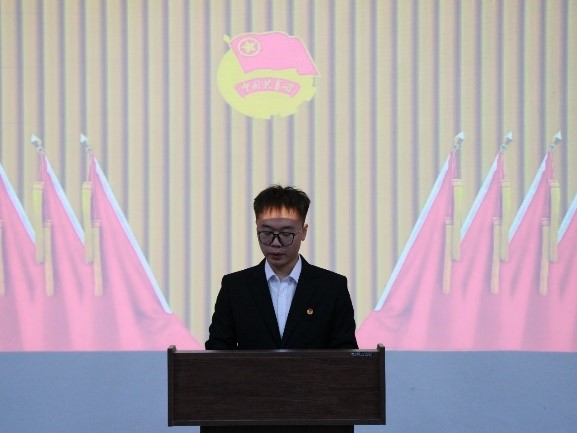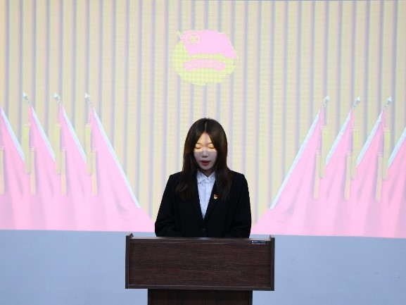 会议第九项:新当选的石油工程学院团总支副书记扈宁彤致词