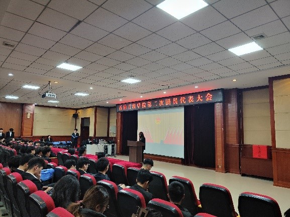 会议第五项:石油工程学院团员代表刘雪丰同学宣读代表选举办法。