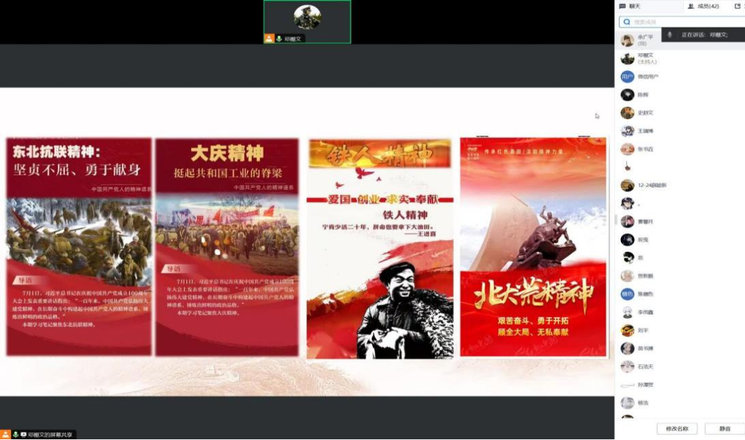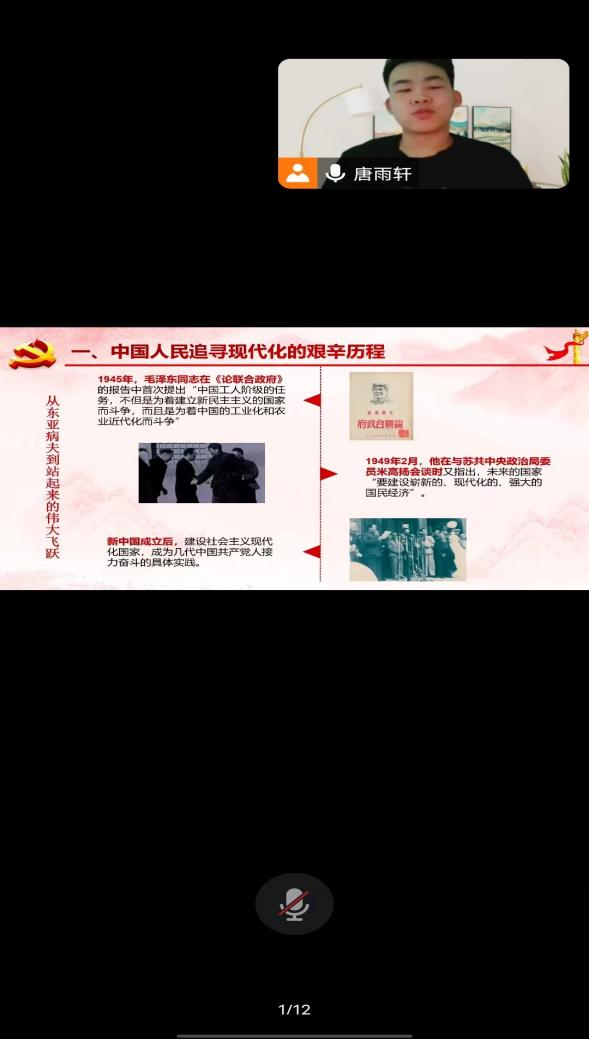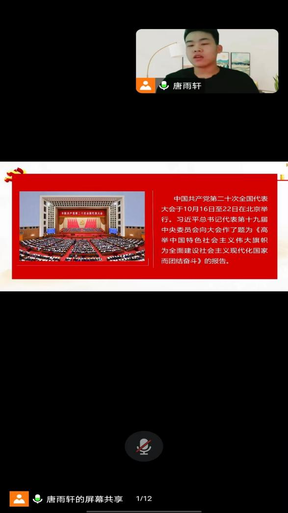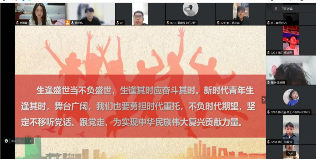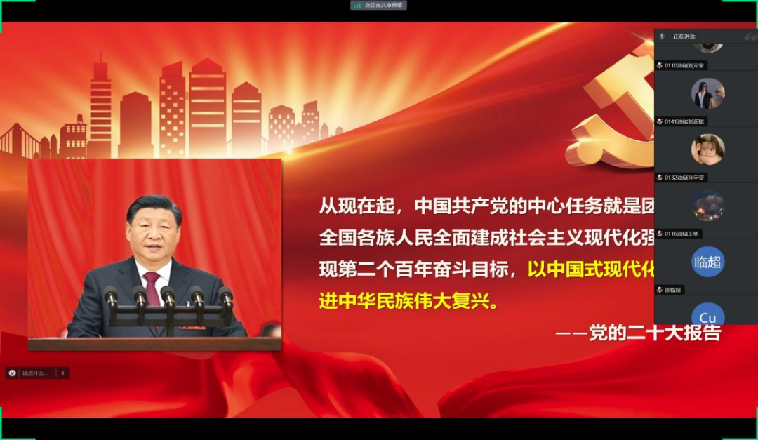 1月7日石油工程学院21级油储三班团支书朱宝磊为大家带来的宣讲主题是《文化是民族生存和发展的重要力量》,此次宣讲我院共计30人参加,完美拉下了此次线上宣讲工作的帷幕。