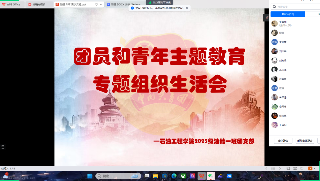会议第一项由石油工程学院分团委学生团总支副书记邢佳宇报告团员和青年主题教育开展情况,通报团支部委员会查找不足等情况。