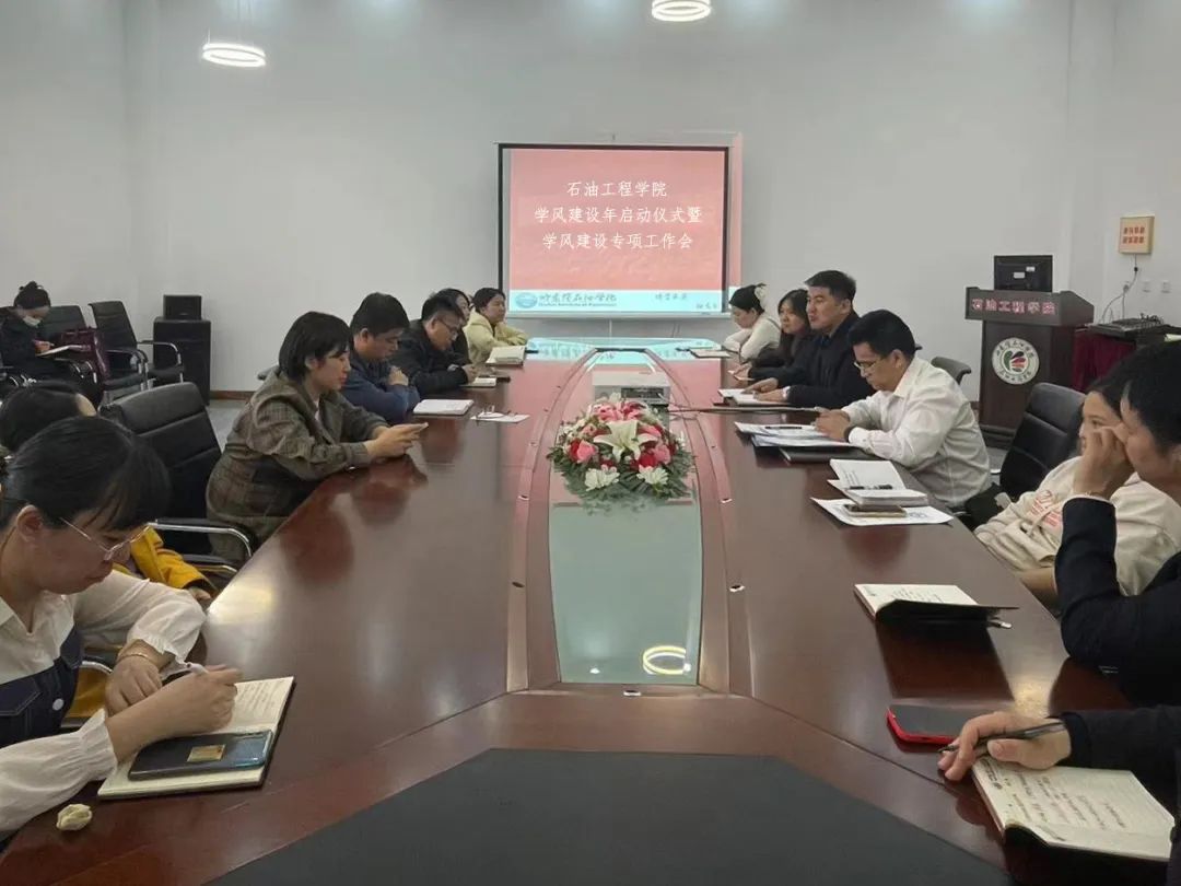 为深入推进立德树人根本任务,大力提高人才培养质量,进一步加强学风建设,优化育人氛围,提高人才培养质量,4月2日,石油工程学院召开学风建设年启动仪式暨学风建设专项工作会。石油工程学院院长李岳祥,党总支书记刘雁春,全体教职工参加本次会议。