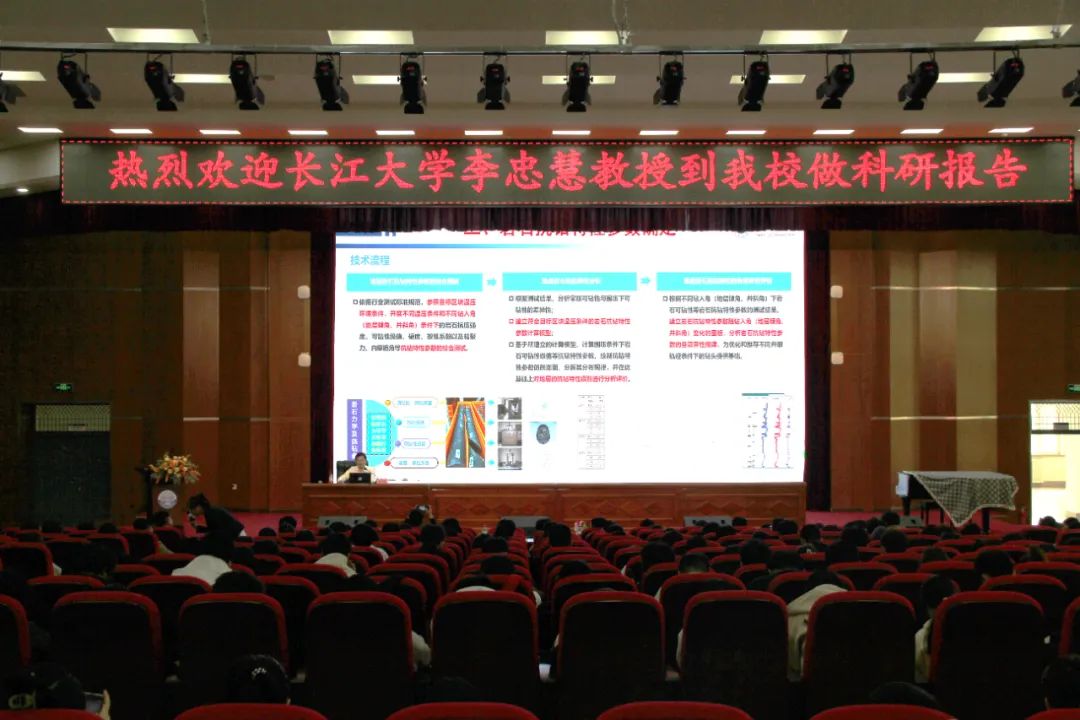 为进一步强化我院教师团队科研能力,为学生营造良好的学术氛围,4月29日,石油工程学院特邀长江大学石油工程学院副院长李忠慧教授,在图书馆报告厅,为师生带来了关于《岩石抗钻特性参数确定及钻井提速技术研究》的专题科研报告,报告会由李岳祥院长主持。