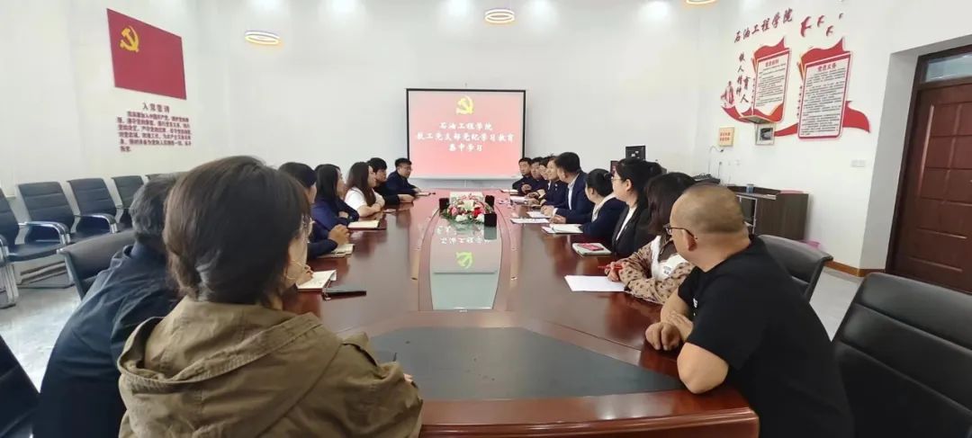 4月30日,石油工程学院教工党支部开展党纪学习教育集中学习,深研细读新修订的《中国共产党纪律处分条例》(新修)第4章-第6章。石油工程学院教工支部书记朱砂主持,全体教师党员参加。
