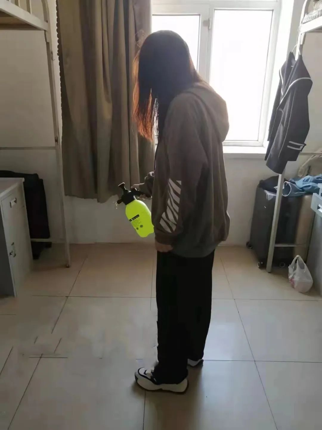 党员、积极分子、学生干部高效率、高质量完成消毒工作,同时也不忘提醒同学们在春季疾病传播的高发季节,大家要注意寝室卫生,经常开窗通风、保持室内空气流通,着重注意个人防护,多参与体育活动,增强自身免疫力。