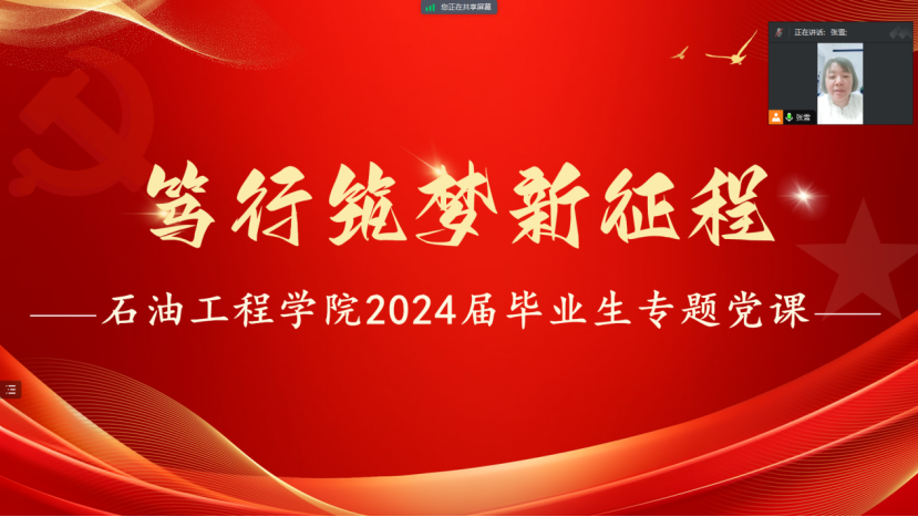 党课,旨在通过系统性的学习,引导青年党员深刻理解自身在新时代中的角色与使命。党课分为三个核心部分,紧密围绕“是什么—为什么—怎么做”的逻辑框架,层层递进,内容丰富。张鹏飞老师以《笃行筑梦新征程》为题,阐述了新时代青年党员的使命与担当,为毕业生带来了一堂生动精彩的党课。张雪老师以史为鉴、以事为例,告诉大家不论什么时期,青年始终是国家的中流砥柱,是国家的希望和未来。她表示,希望各位同学牢牢把握住新时代的机遇,不忘初心、牢记使命,做有理想、有情怀、有温度、有内涵的人,以一往无前的奋斗姿态和永不懈怠的精神状态,勇挑重担、苦干实干。