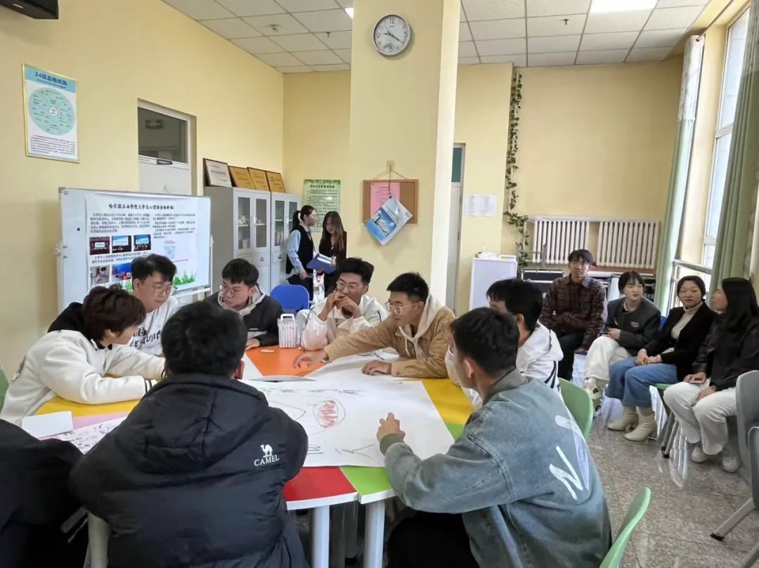 为促进新生对自己、他人和学校的认识,增进学生之间的相互理解,尽快地适应大学的交往和生活。10月11日,我院2024级学生代表在校大学生心理健康中心参加新生适应训练团体辅导活动。本次活动由大学生心理健康中心叶雨桐老师担任主讲人,我院党总支书记孙晓萍、党总支副书记张雪及全体辅导员老师观摩了此次活动。