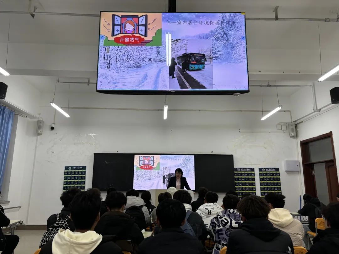 讲座伊始,两位老师介绍了哈尔滨气候的特点、冬季御寒的基本知识和技巧,为同学们提供防寒保暖的方案,如多层穿衣法、选择防风防寒的衣物羽绒服、佩戴帽子围巾手套等防寒必备物品,以及在合理饮食、增强身体抵抗力等方面给予了建议。同时,两位老师也提醒同学们要根据天气变化进行衣物的增添,并为同学们讲解如何应对冻伤。此外,老师们还分享了一些实用的御寒小窍门,如使用热水袋、吃热食、常备暖贴和消毒物品,如有发热情况及时上报就医。