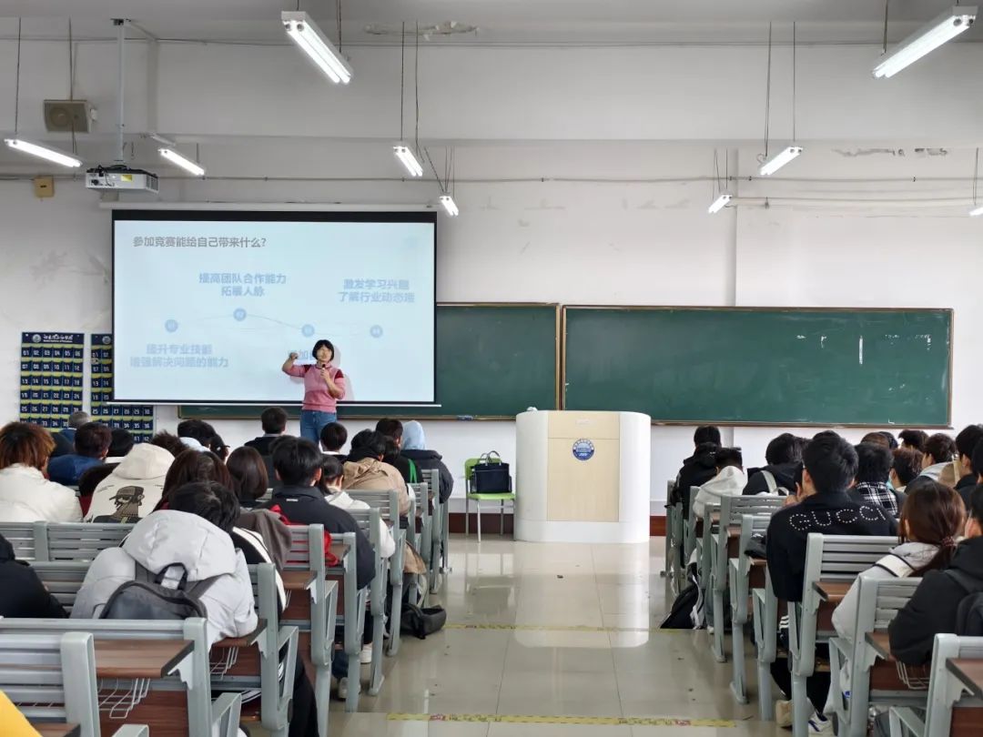 讲座伊始,郑洲老师以生动的语言和丰富的案例,向同学们阐述了学科竞赛的重要性。老师指出,这些竞赛不仅是展示个人才华的舞台,更是提升综合素质、培养创新精神和实践能力的重要途径。随后,老师详细介绍了各类竞赛项目,涵盖学科竞赛、创新创业大赛、文体竞赛等多个领域。对于每一项竞赛,老师都深入讲解了其特点、参赛要求以及所带来的收获。