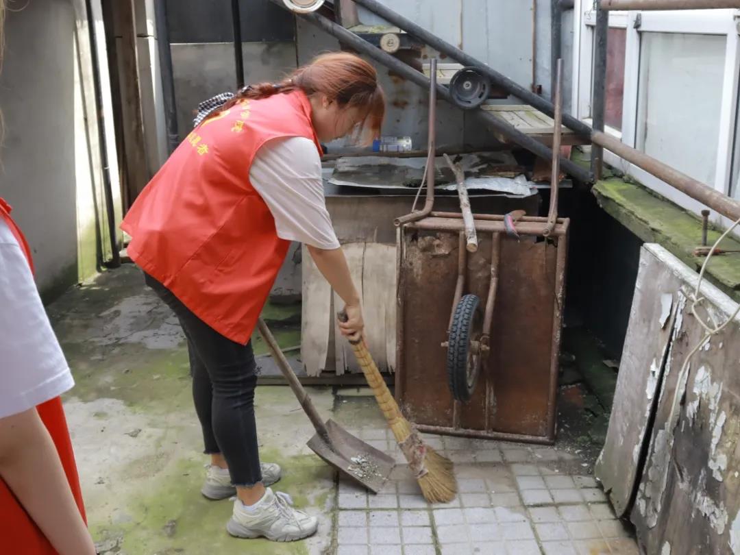 仪式结束后,志愿者为村民们打扫卫生,清扫垃圾,与村民们热切的交谈,并发放了防疫宣传海报。