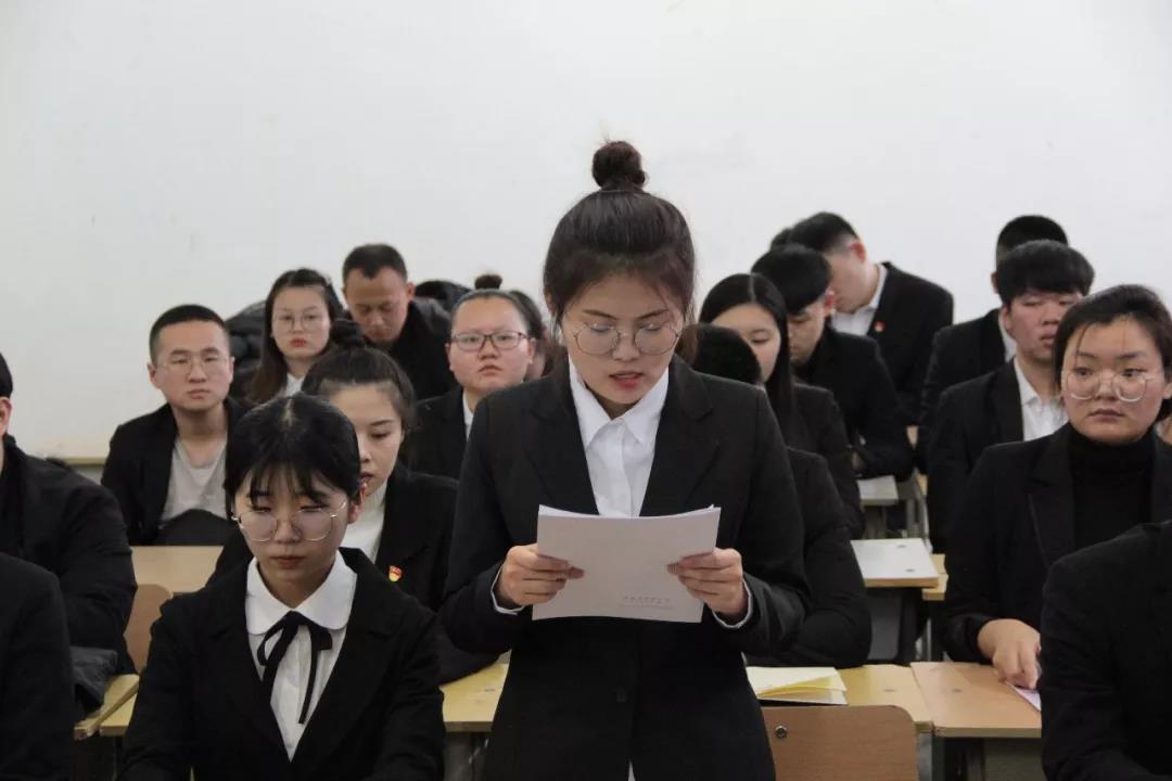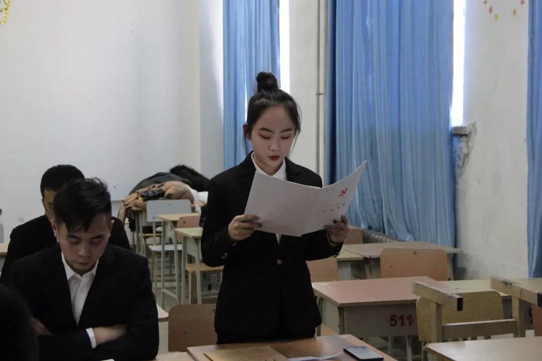 会议严格按照组织发展程序进行。吴运航等9名同志分别宣读了《入党志愿书》,入党介绍人介绍了他们的有关情况,并对其能否入党表明了意见。支委会组织委员郑洲向大会分别报告了9名同志的资格审查情况。与会党员进行了充分的酝酿讨论,并发表了意见。经逐一投票表决,大会一致通过关于接受吴运航等9名同志为中共预备党员的决议。随后,刘雁春等同志为新党员佩戴了党徽;学生党支部书记王昱带领新党员面向党旗郑重宣誓,同时带领老党员重温了入党誓词。
