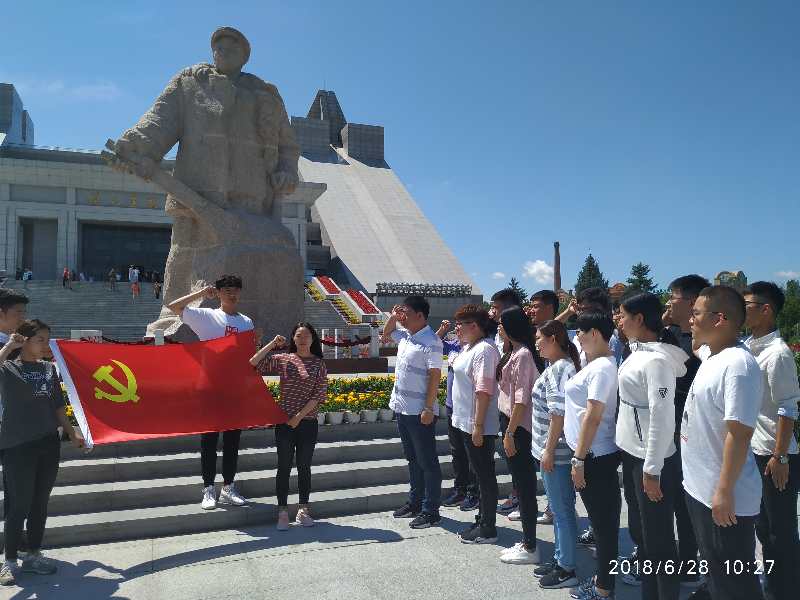 为迎接中国共产党建党97周年,宣传和弘扬大庆精神和铁人精神,石油工程学院党总支于2018年6月28日上午10时,组织正在大庆实习的2015级全体学生党员来到大庆铁人纪念馆参观学习,并在铁人王进喜的塑像前重温了入党誓词。我院学生党支部纪检委员、2015级辅导员于洪峰同志带领学生党员进行了庄严宣誓。