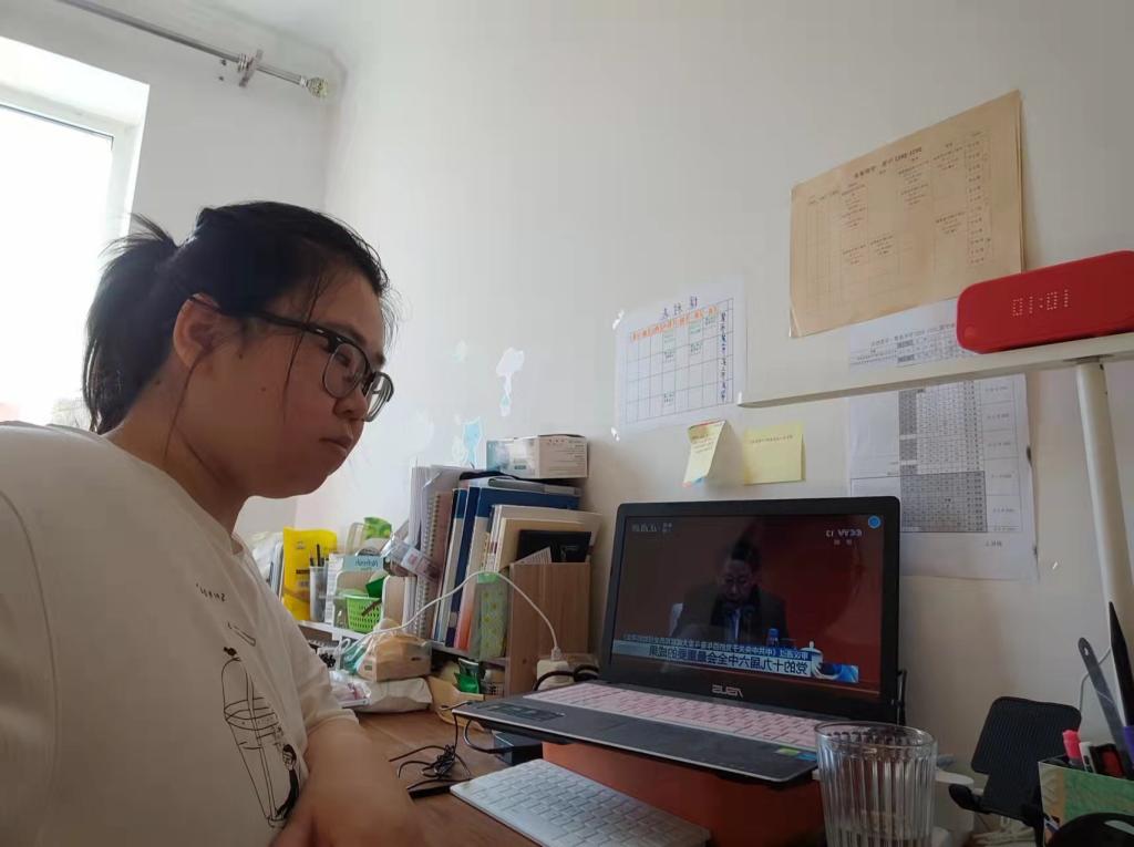 学生党员收听收看新闻发布会