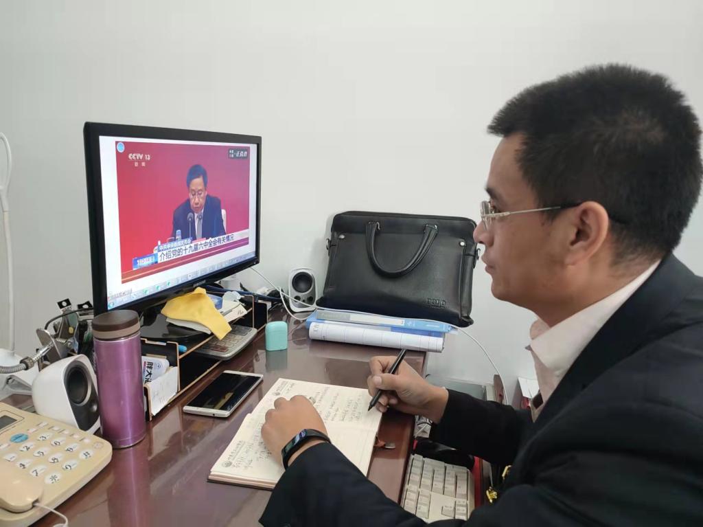 在庆祝中国共产党百年华诞的热烈氛围中,在“两个一百年”奋斗目标的历史交汇期,中国共产党迎来又一次意义重大的盛会——十九届六中全会。为学习贯彻好党的十九届六中全会精神,坚定党员理想信念,准确把握全会精神实质和丰富内涵,11月12日,我院党总支组织全体师生党员收听收看十九届六中全会重要新闻发布会。