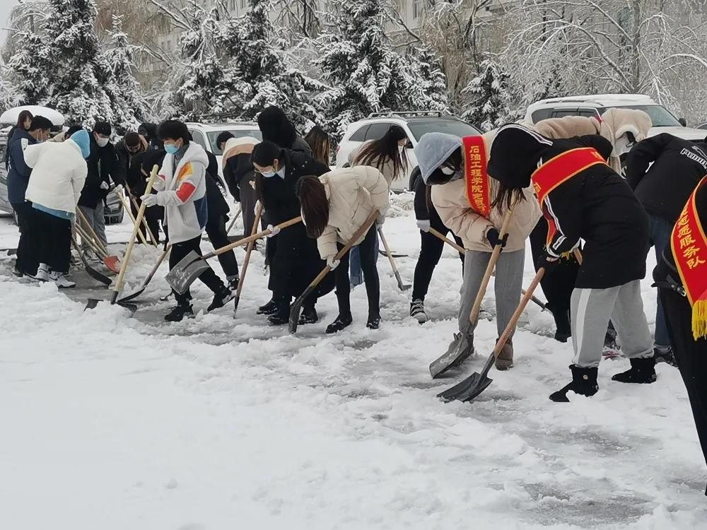 为缓解暴雪过后校内道路积雪给师生出行带来不便,确保校园内道路畅通,11月10日,我院全体学生党员及入党积极分子,在党总支书记刘雁春和学生党支部书记贾延迪的带领下迅速展开行动,开展除雪清道工作,发挥党员干部的先锋模范作用,以实际行动践行初心使命,集中力量扫雪除冰,为师生出行安全尽一份力。