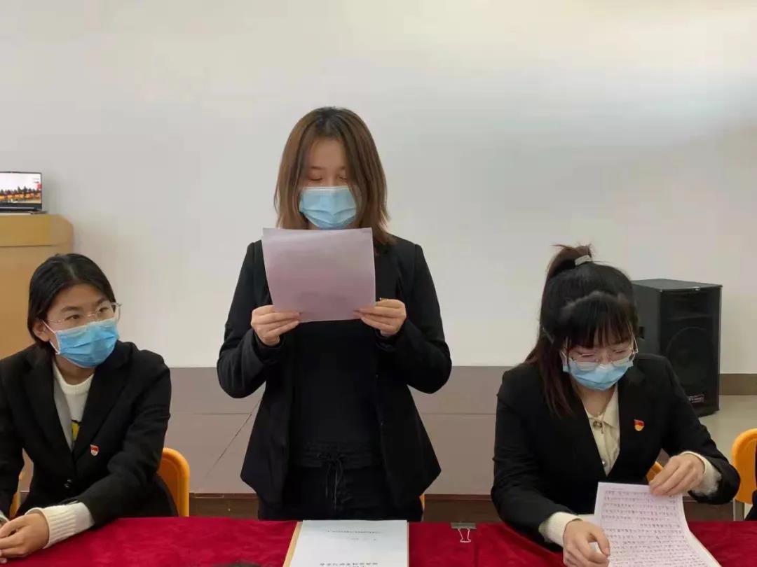 会议流程严格按照《中国共产党章程》和《中国共产党发展党员工作细则》进行。学生党支部书记贾延迪首先向大家介绍了本次大会的会议内容与主要流程。接着,申请转正的预备党员杨航、宋晓玉、俱薇同志逐一宣读了转正申请书,他们详细的对预备期内自我的思想、工作、学习等情况综合进行了汇报。培养人及支部组织委员分别向大会报告了预备期内预备党员的表现,会议对他们的申请进行了严格审查与讨论,参会党员对以上每一位同志在预备期间的表现发表了自己的看法。最后,经无记名投票表决,统计汇总,学生党支部书记贾延迪宣读支部决议,大会同意杨航等三名同志按期转正为中共正式党员。