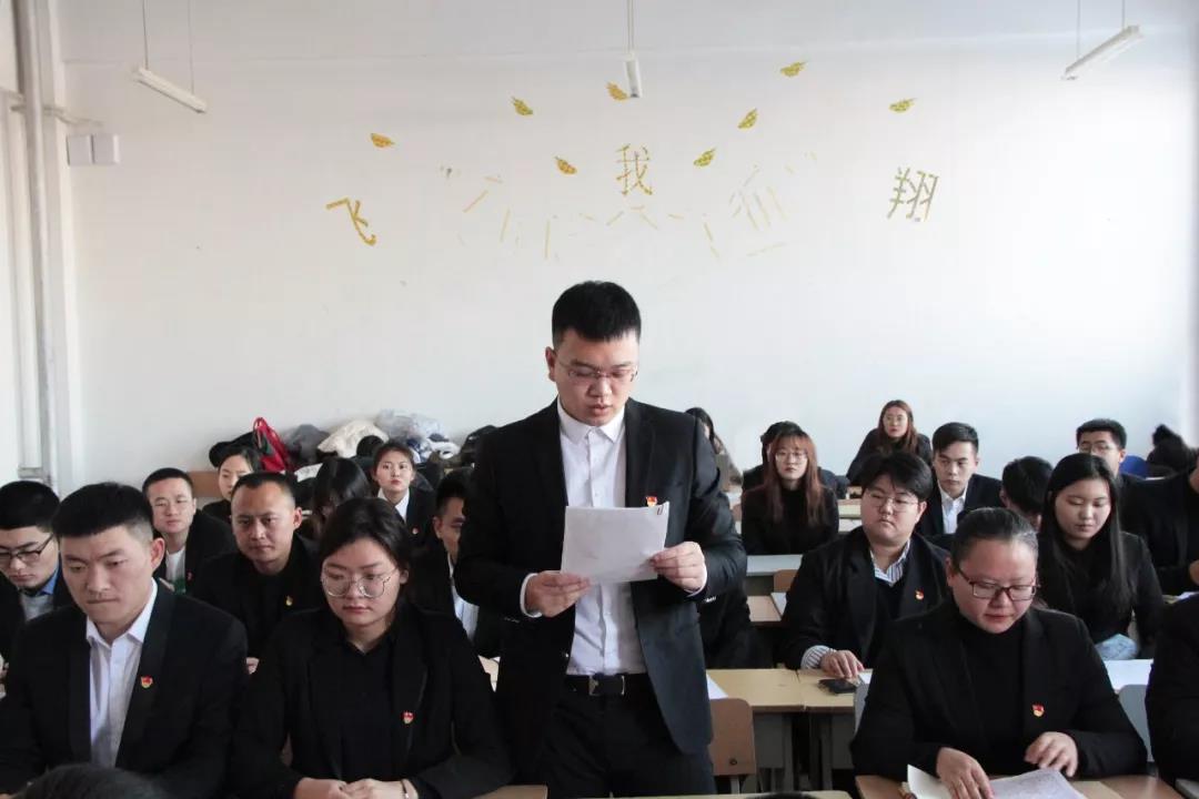 12月4日,我院学生党支部在609教室召开支部大会,大会对冯宇等七名预备党员能否按期转正进行了讨论。党总支书记刘雁春、党总支副书记张雪、学生党支部书记王昱、学生党支部组织委员郑洲,宣传委员胡旭、纪检委员李井洋参加大会,大会由学生党支部书记王昱主持。