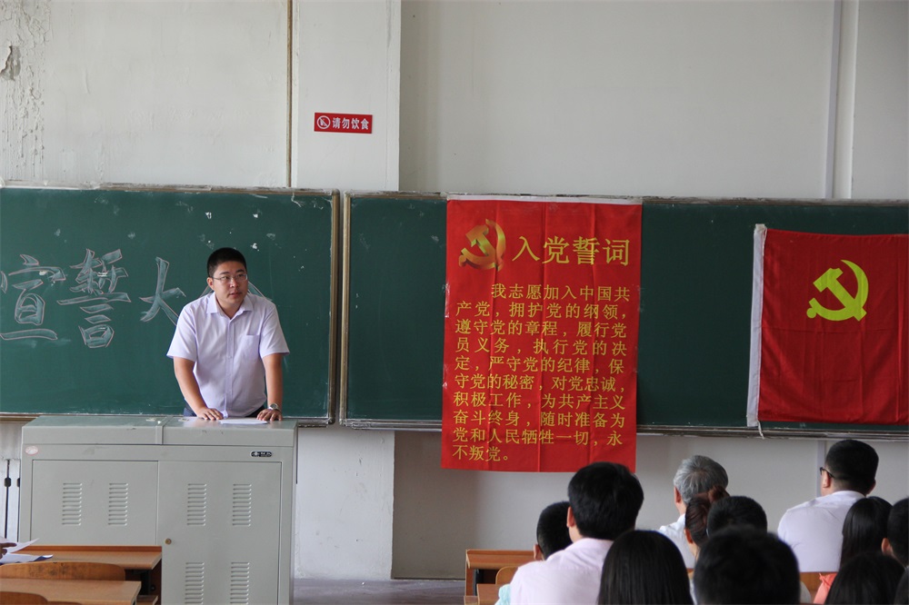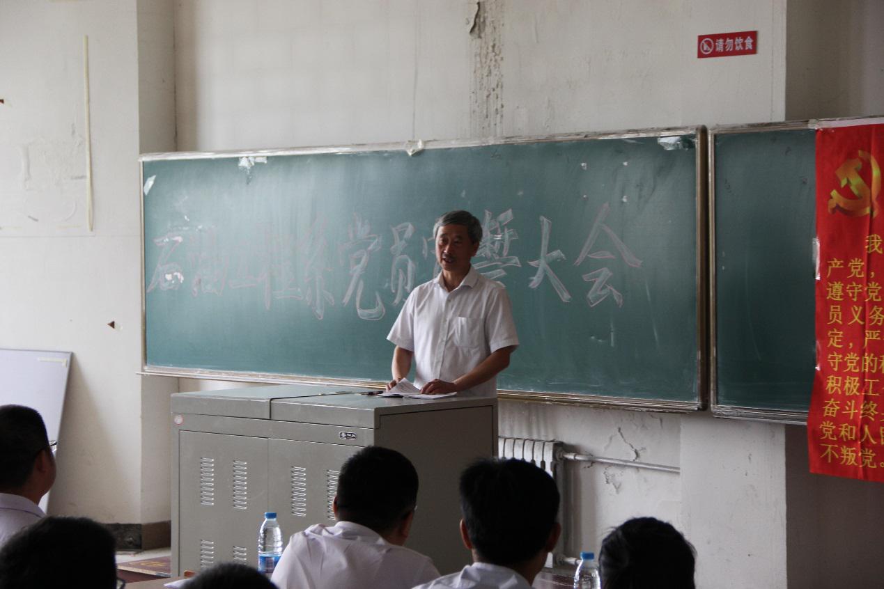 今年的7月1日是中国共产党成立94周年纪念日,为加强新党员的党性修养,提高党员意识,石油工程系党总支组织19名新加入党组织的预备党员进行了入党宣誓,大会由石油工程系党总支组织委员孙晓萍同志主持,院党委副书记、副院长于静波、石油工程系党总支书记毛雷及各支部负责同志、入党积极分子代表参加了大会。