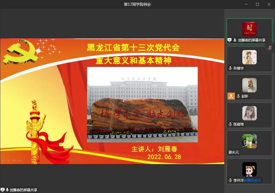 为深入学习贯彻省第十三次党代会精神,充分发挥基层党组织和广大党员先锋模范作用,践行初心、勇担使命。6月28日,学院党总支在线上为教工党支部全体党员讲授“奋进新时代、再创新辉煌”为主题的专题党课。我院党总支书记刘雁春担任本次党课主讲人。