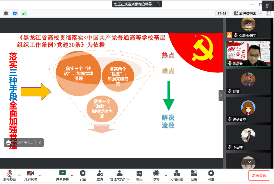 会议最后,学院党总支刘雁春书记就抓基层党建工作提出五点要求: