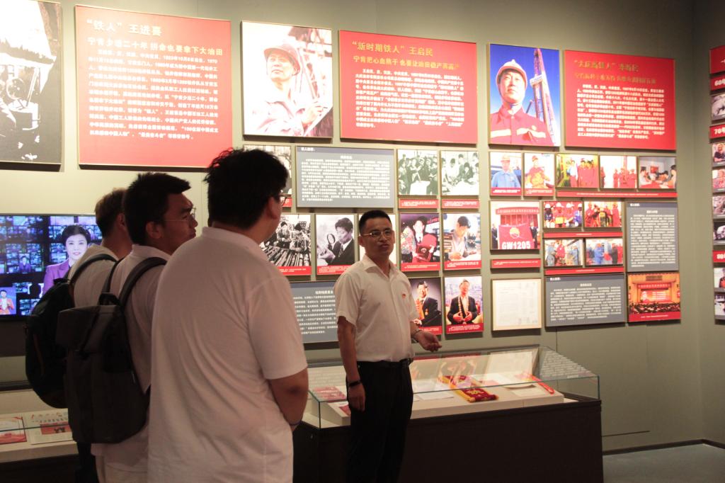 参观过程中,同学们通过观看图片和实物,聆听铁人王进喜成长、创业、拼搏的人生历程,亲身感受了他身上表现出来的忘我拼搏、艰苦奋斗、科学求实、埋头苦干的铁人精神。看着一幅幅感人肺腑的画面,大家被王进喜生前“有条件要上,没有条件创造条件也要上”的艰苦奋斗精神所感动;被不顾伤痛,用身体搅拌泥浆,压住井喷的无私奉献精神所震撼;被“宁肯少活二十年,拼命也要拿下大油田”的忘我拼搏精神所鼓舞,被老一代石油工人战天斗地、无私无畏的精神气概深深感染。